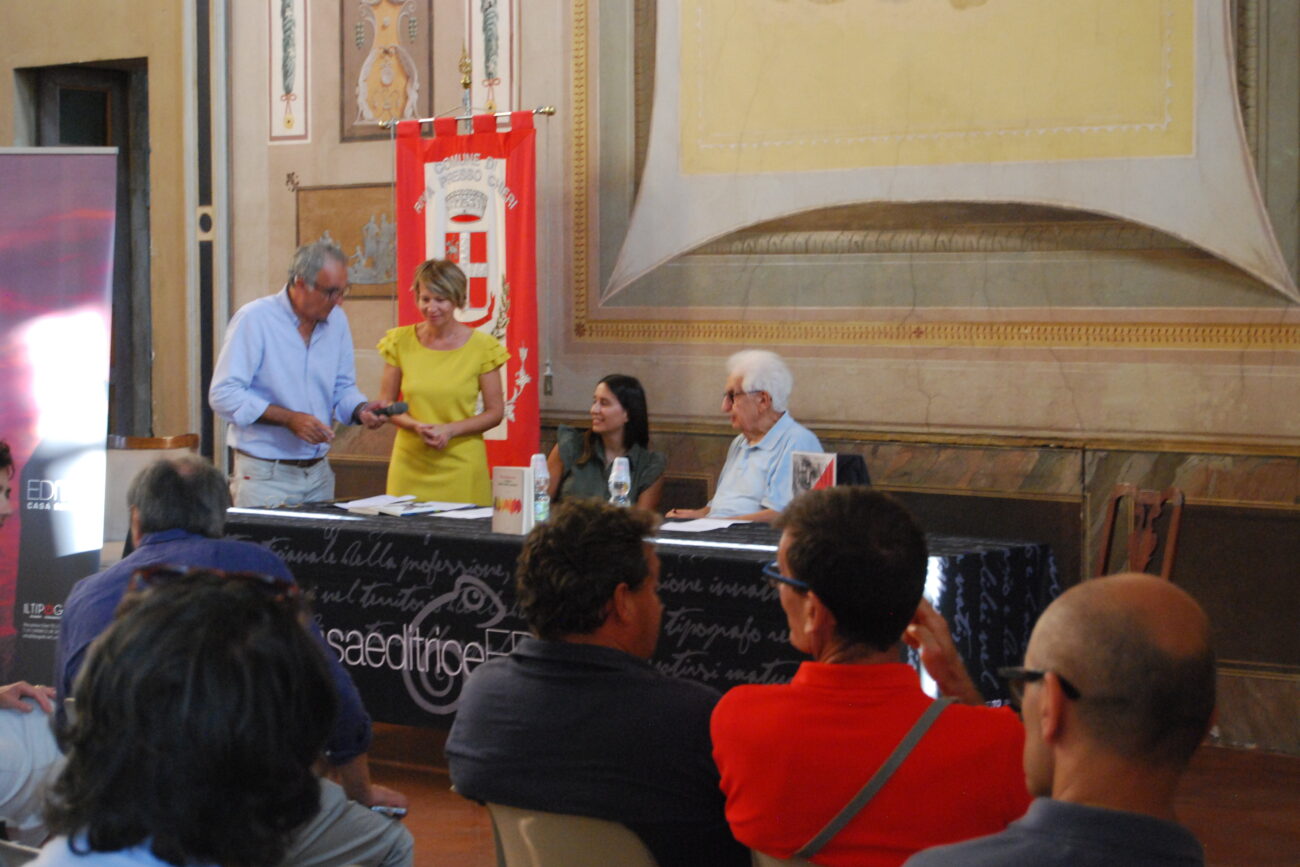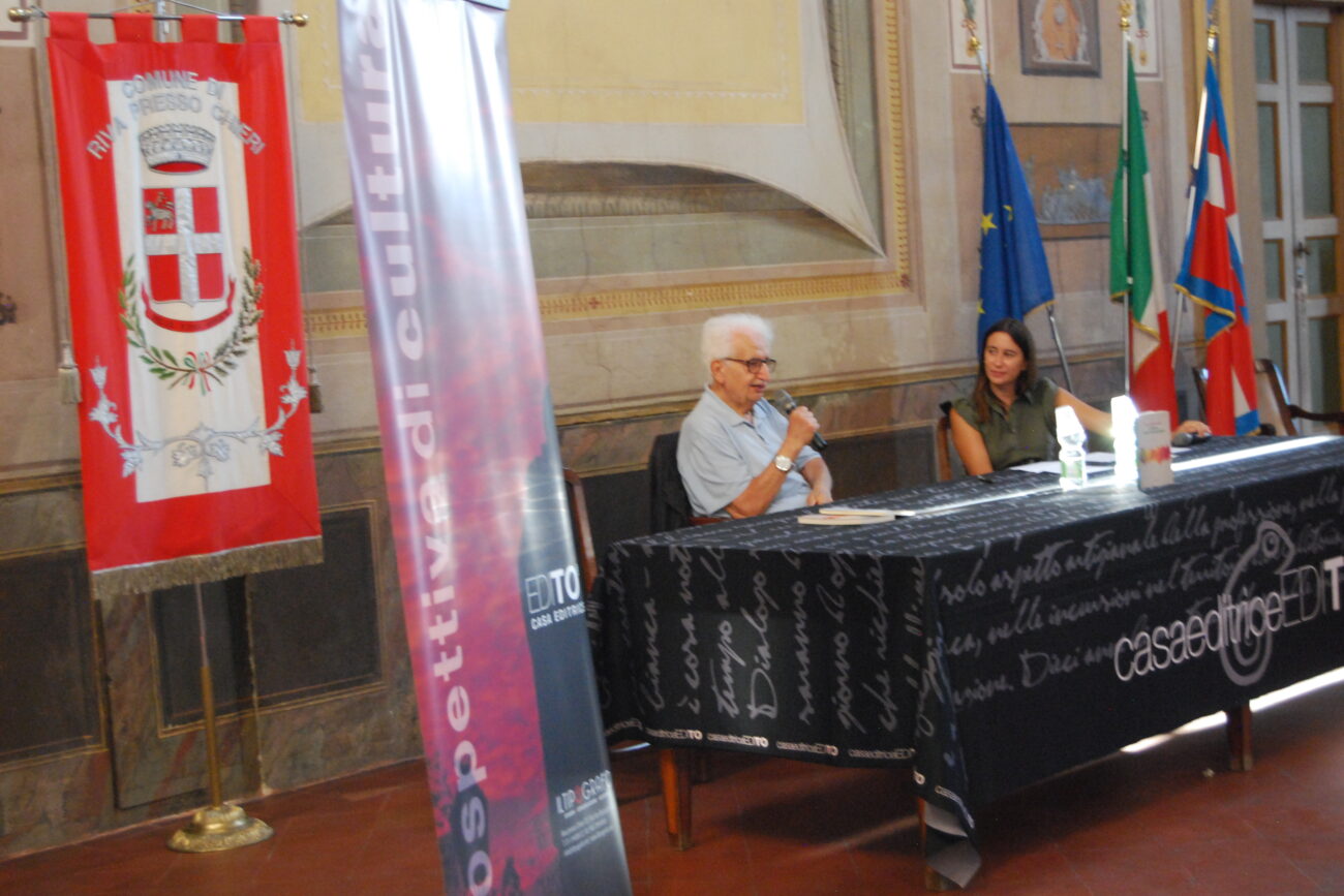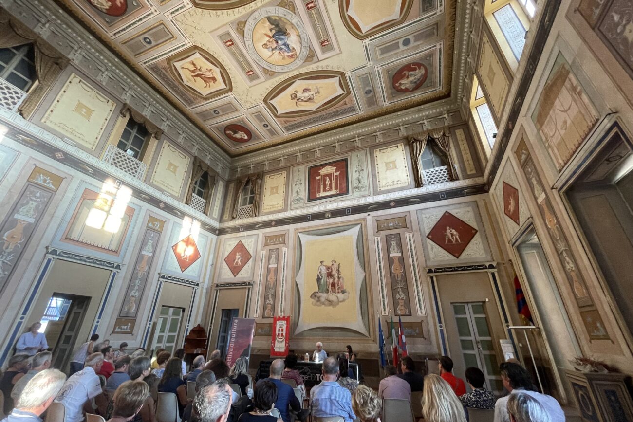 Sotto gli splendidi affreschi degli amori di Zeus che caratterizzano il Salone, Bruno Gambarotta e Luisa Maierà, de Il Tipografo, hanno dialogato fra loro e con il pubblico presente.