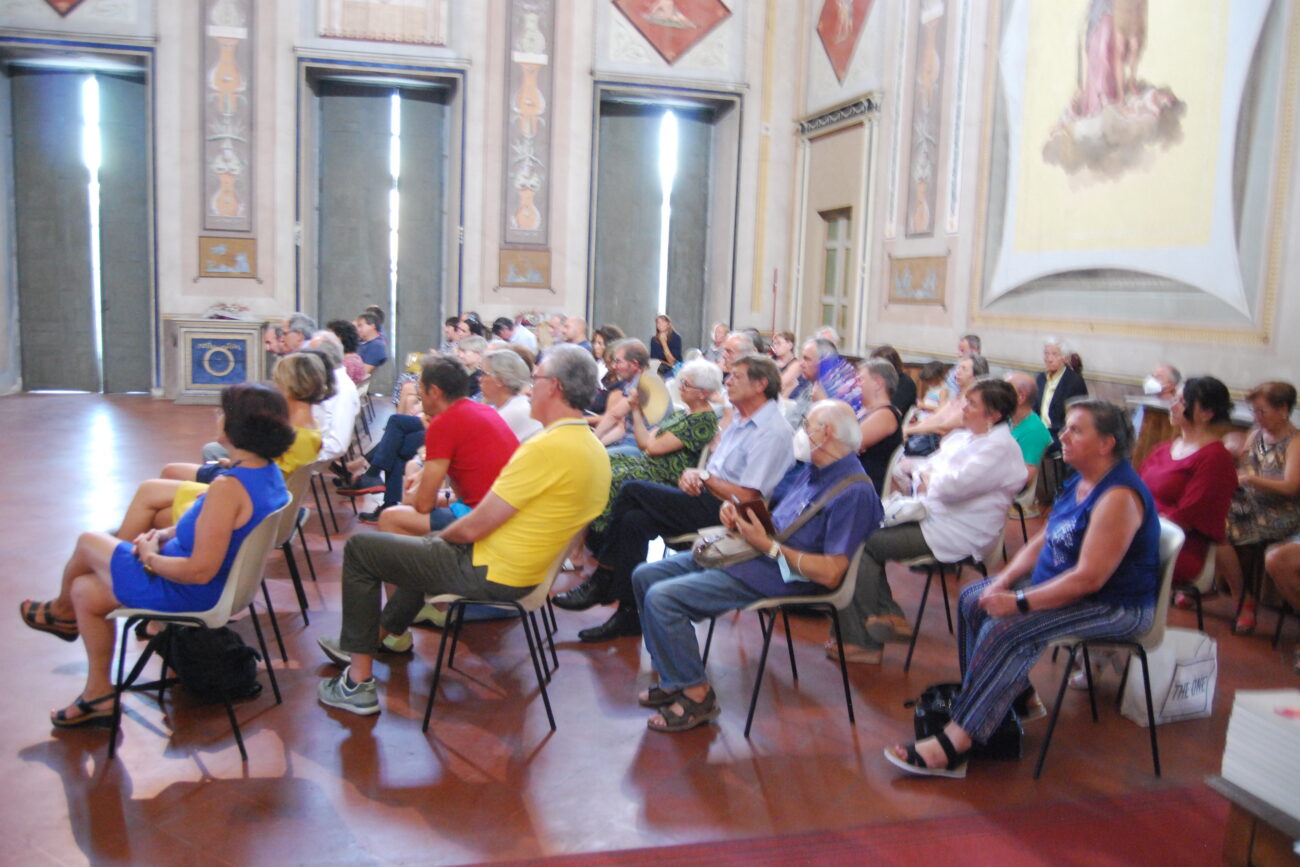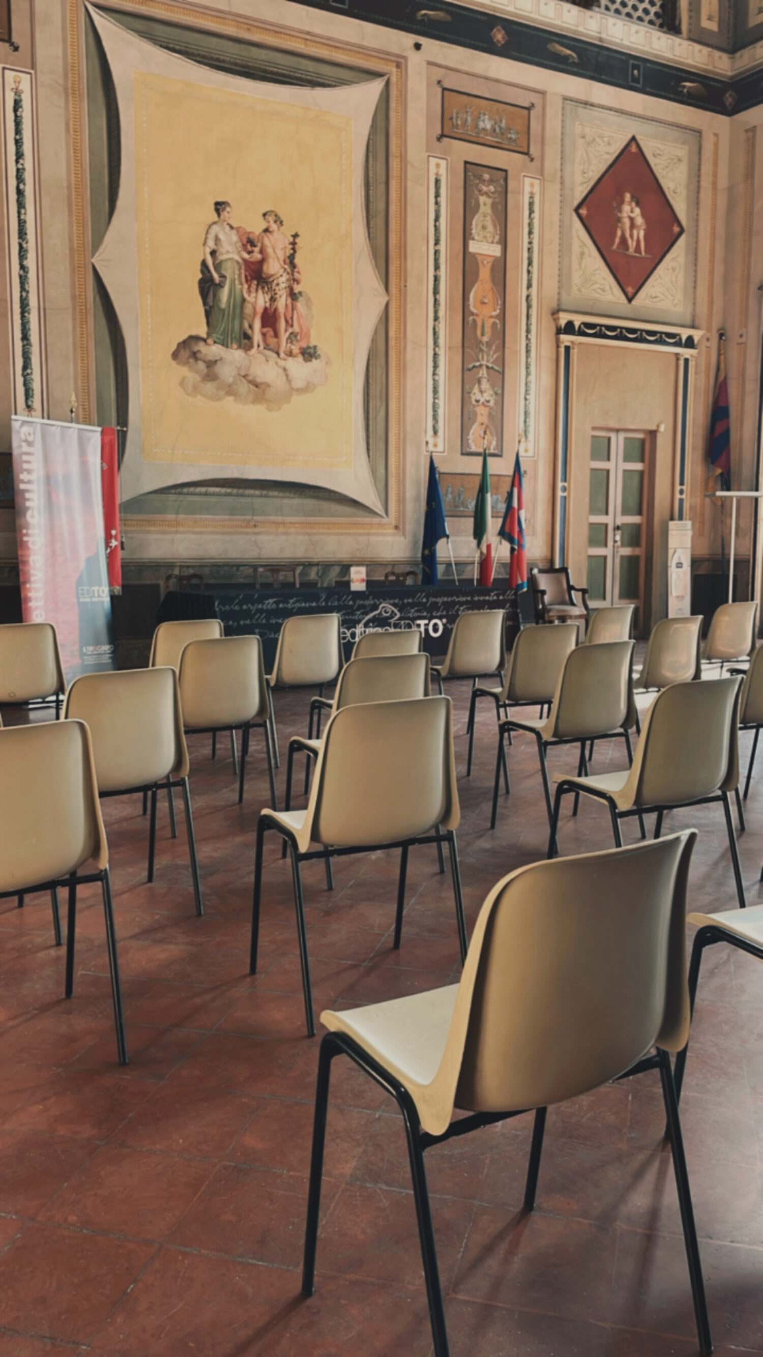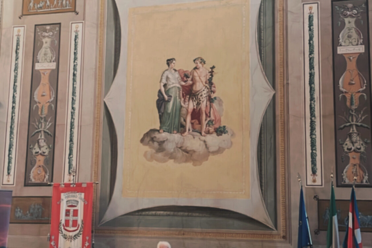 Sotto gli splendidi affreschi degli amori di Zeus che caratterizzano il Salone, Bruno Gambarotta e Luisa Maierà, de Il Tipografo, hanno dialogato fra loro e con il pubblico presente.